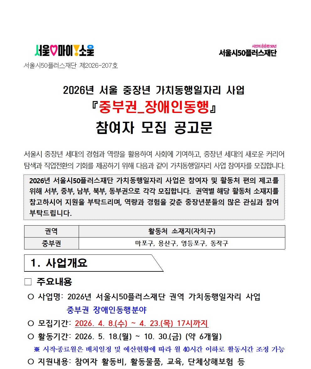서울시50플러스재단 중부권 장애인동행(2차 공동모집)