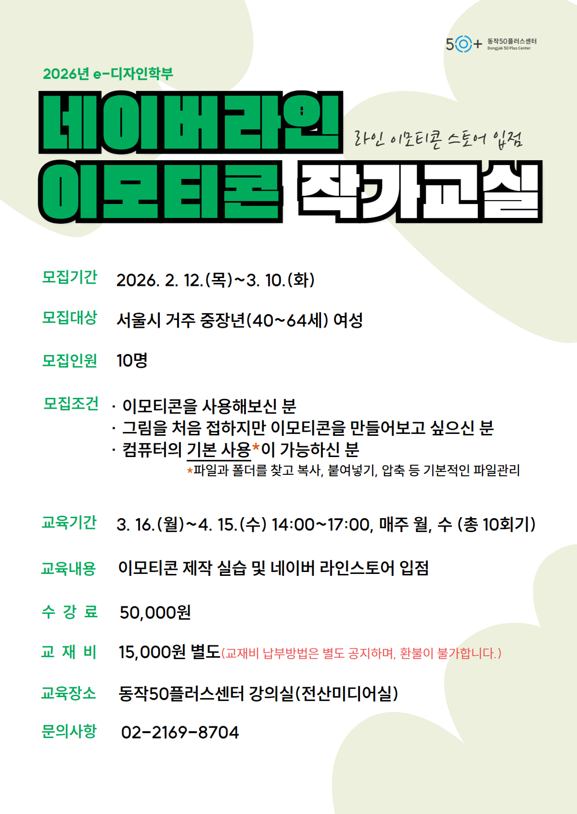 ※ 해당 강좌는 네이버 라인스토어 입점을 목표로 진행되는 교육이며, 포토샵을 활용하여 진행됩니다. (~3/10(화)까지)