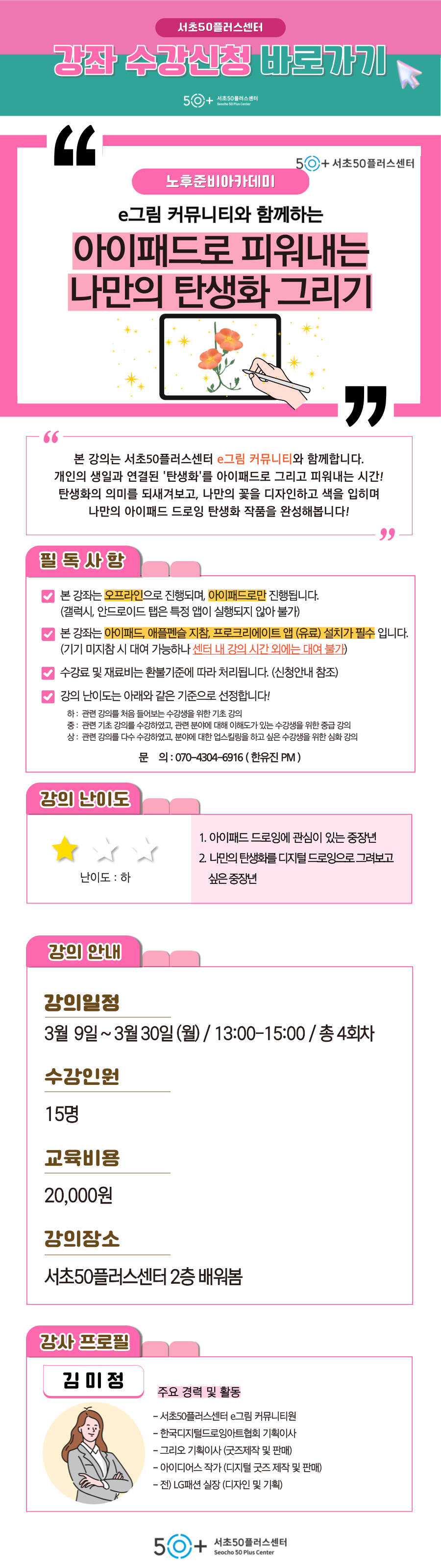 [서초][여가] e그림 커뮤니티와 함께하는 '아이패드로 피워내는 나만의 탄생화 그리기'마감 D-14