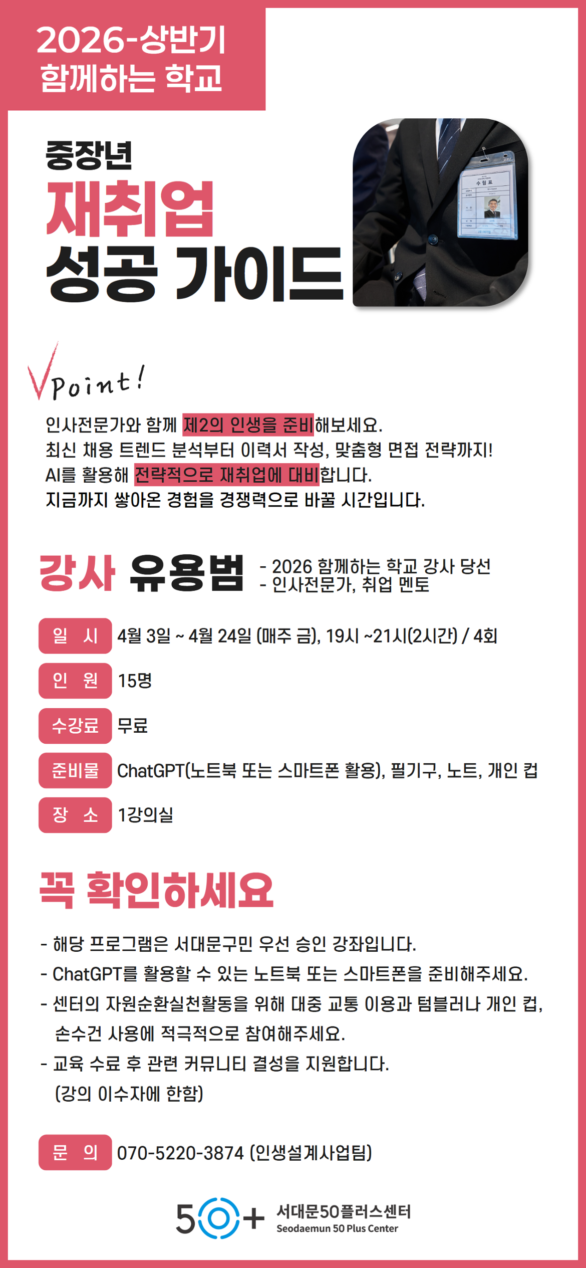 [서대문][함께하는 학교]중장년 재취업 성공 가이드마감 D-37