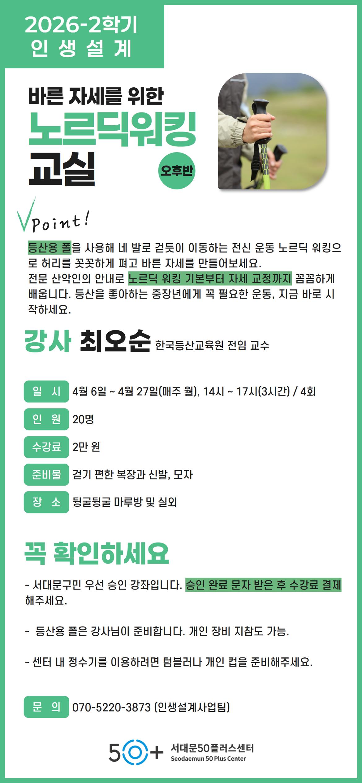 [서대문]바른 자세를 위한 노르딕워킹 교실-오후반마감 D-38