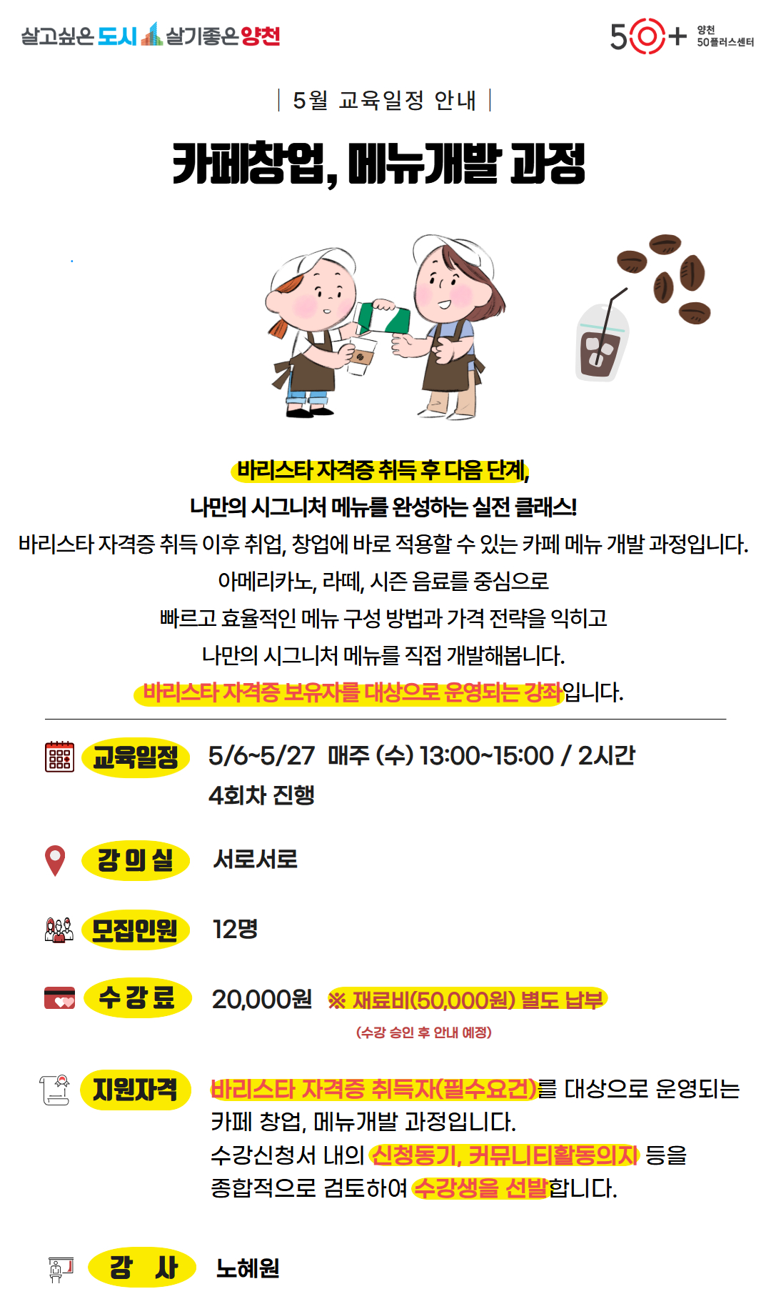 [양천]카페창업, 메뉴개발 과정마감 D-18