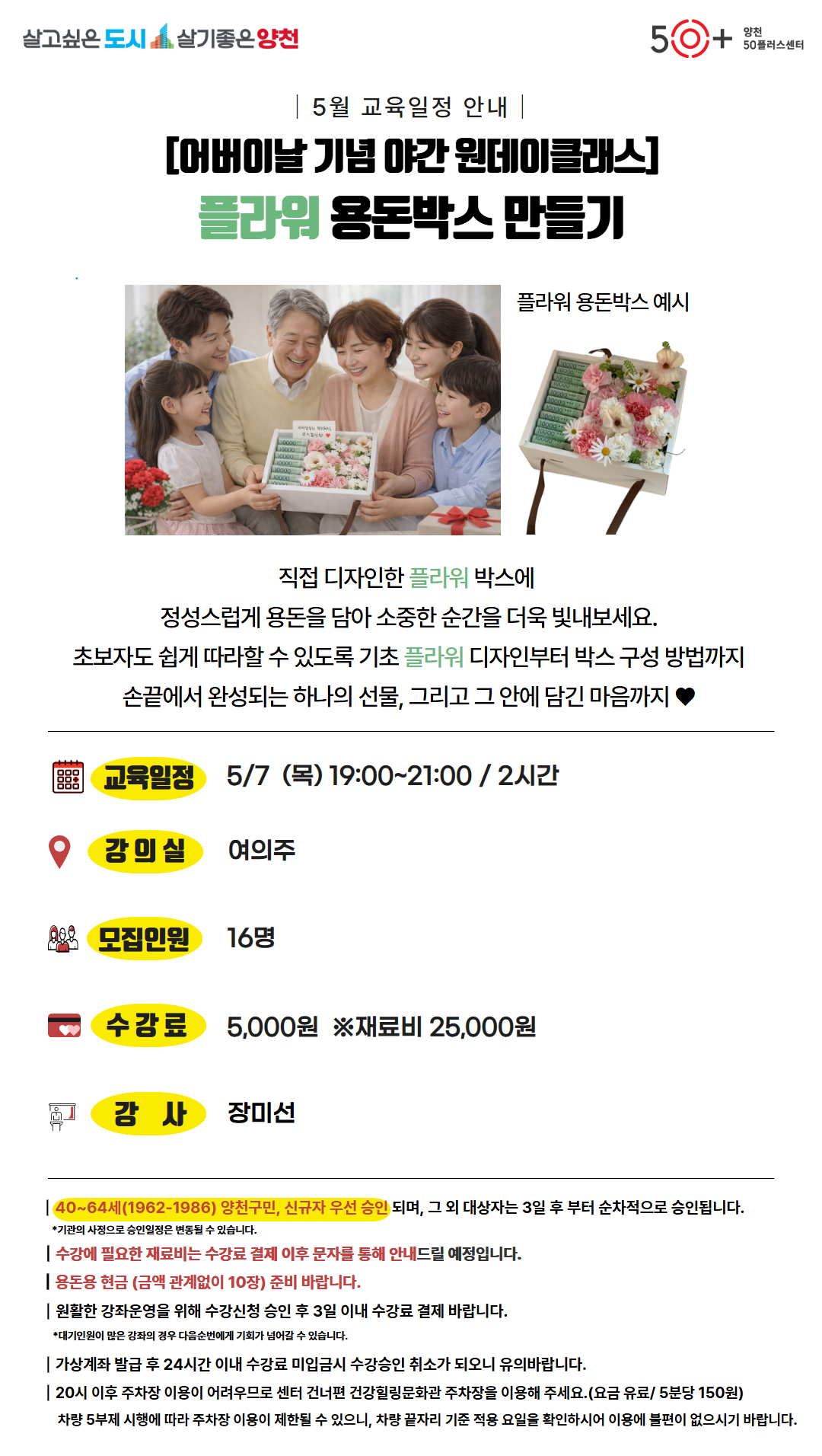 [양천][어버이날 기념] 플라워 용돈박스 만들기 원데이클래스마감 D-13