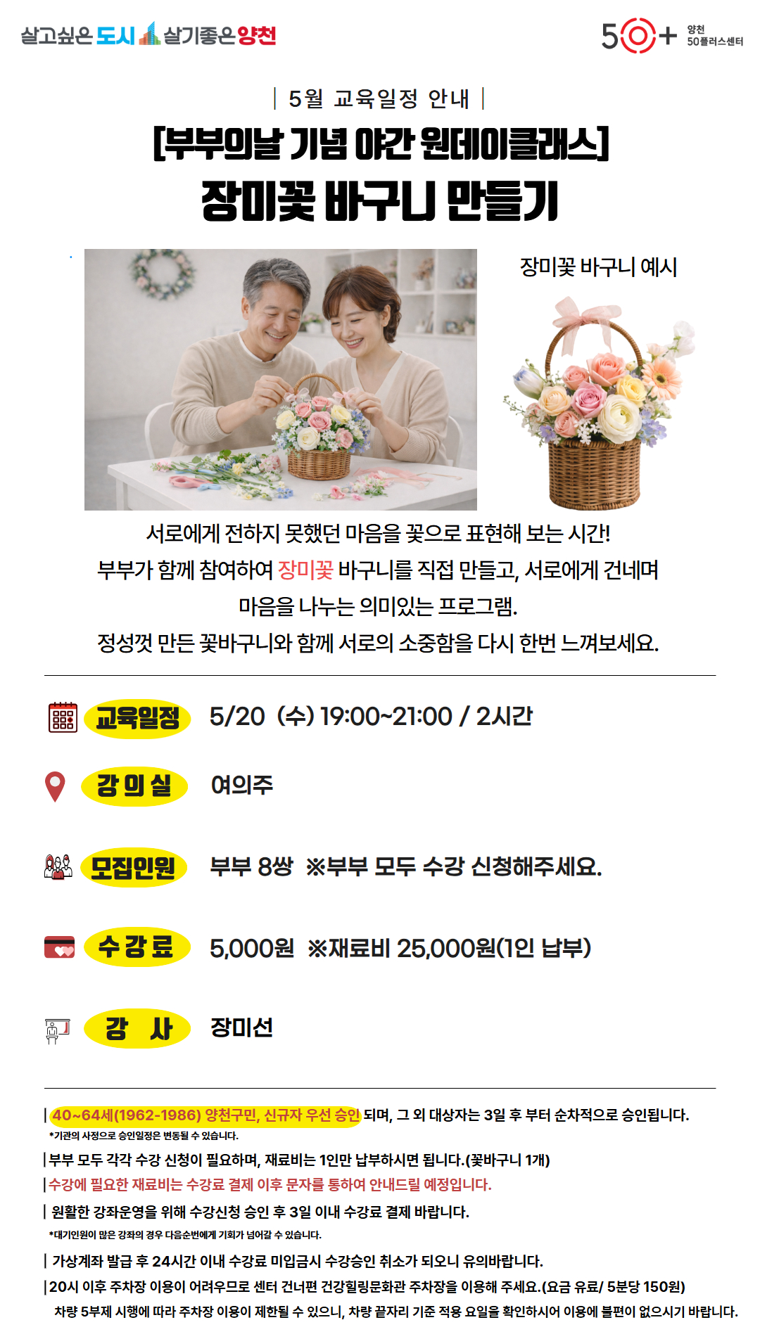 [양천][부부의날 기념] 장미 꽃바구니 만들기 원데이클래스마감 D-27