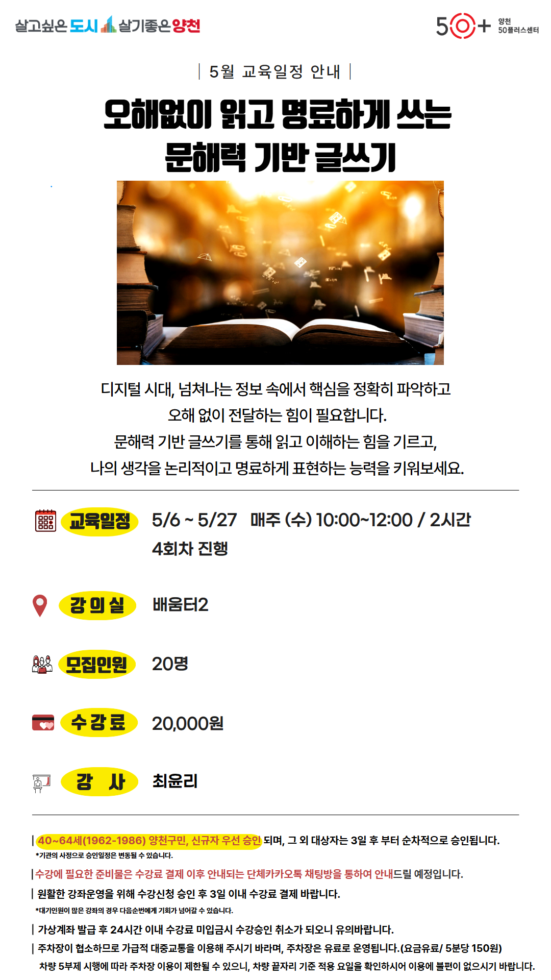 [양천]오해없이 읽고 명료하게 쓰는 문해력 기반 글쓰기마감 D-17