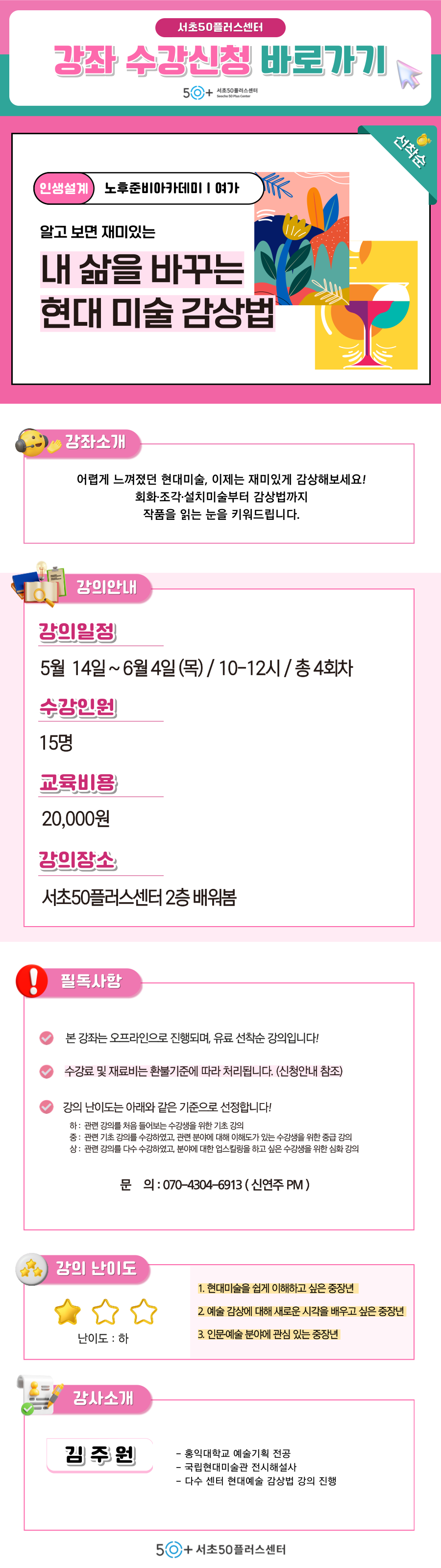 문의 연락처 서초50플러스센터 T. 02-579-5060