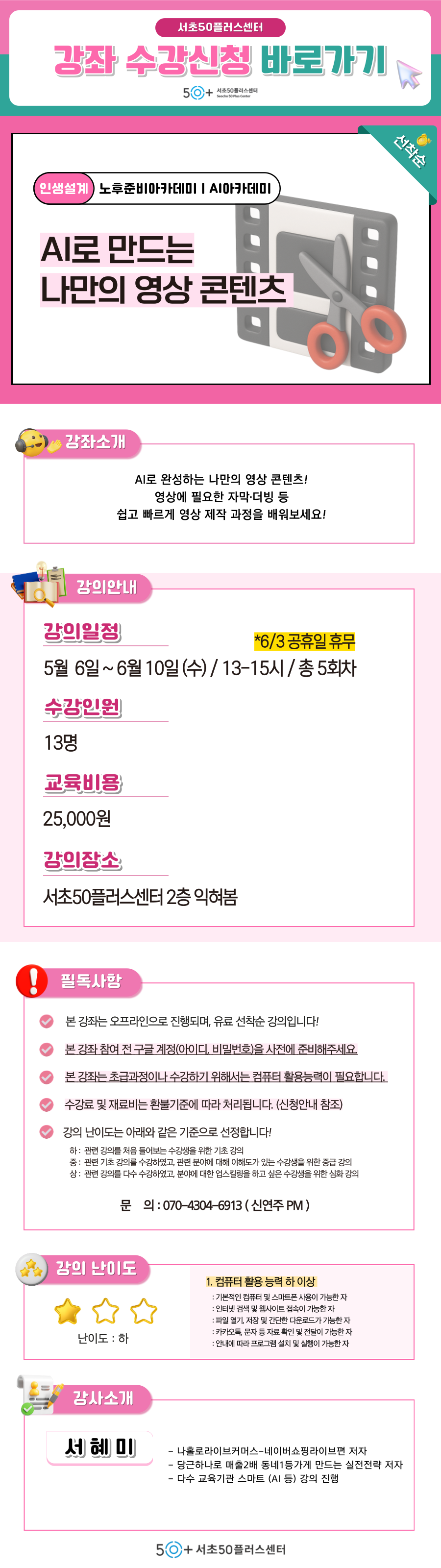 문의 연락처 서초50플러스센터 T. 02-579-5060