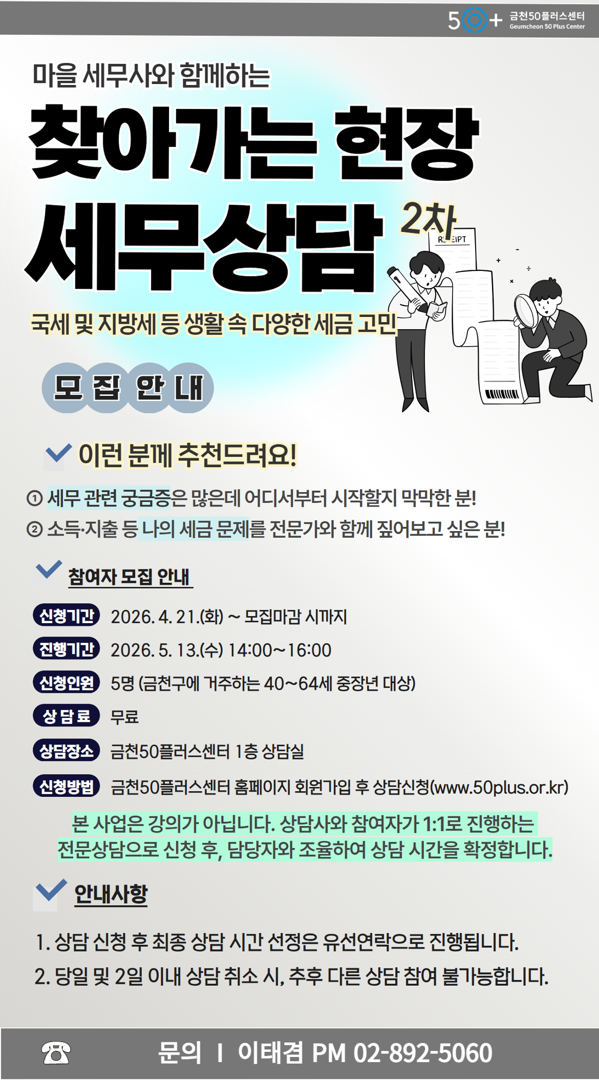 [금천][무료상담] 마을세무사와 함께하는 찾아가는 현장 세무상담 2차마감 D-13