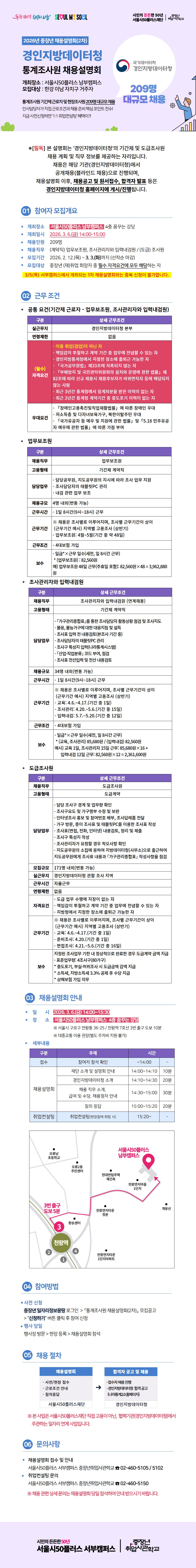 국가통계 생산 분야 근무를 희망하는 중장년을 대상으로 기간제근로자 및 도급조사원 직무와 채용 및 선발과 관련된 정보 제공