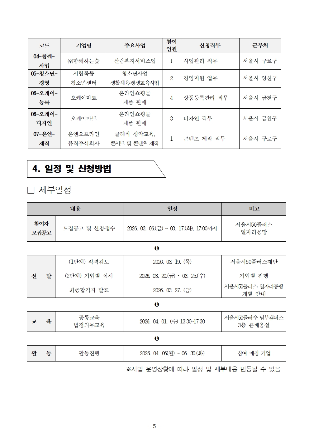 ④ 선발 심사는 참여기업에서 주관하며, 관련 세부일정은 기업에서 개별 안내 예정입니다.