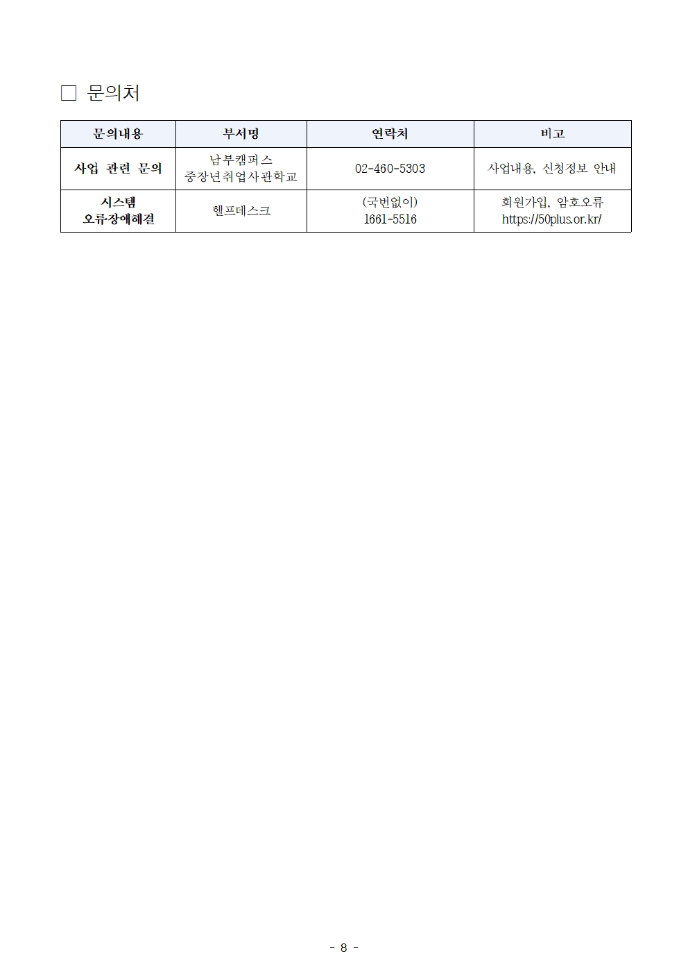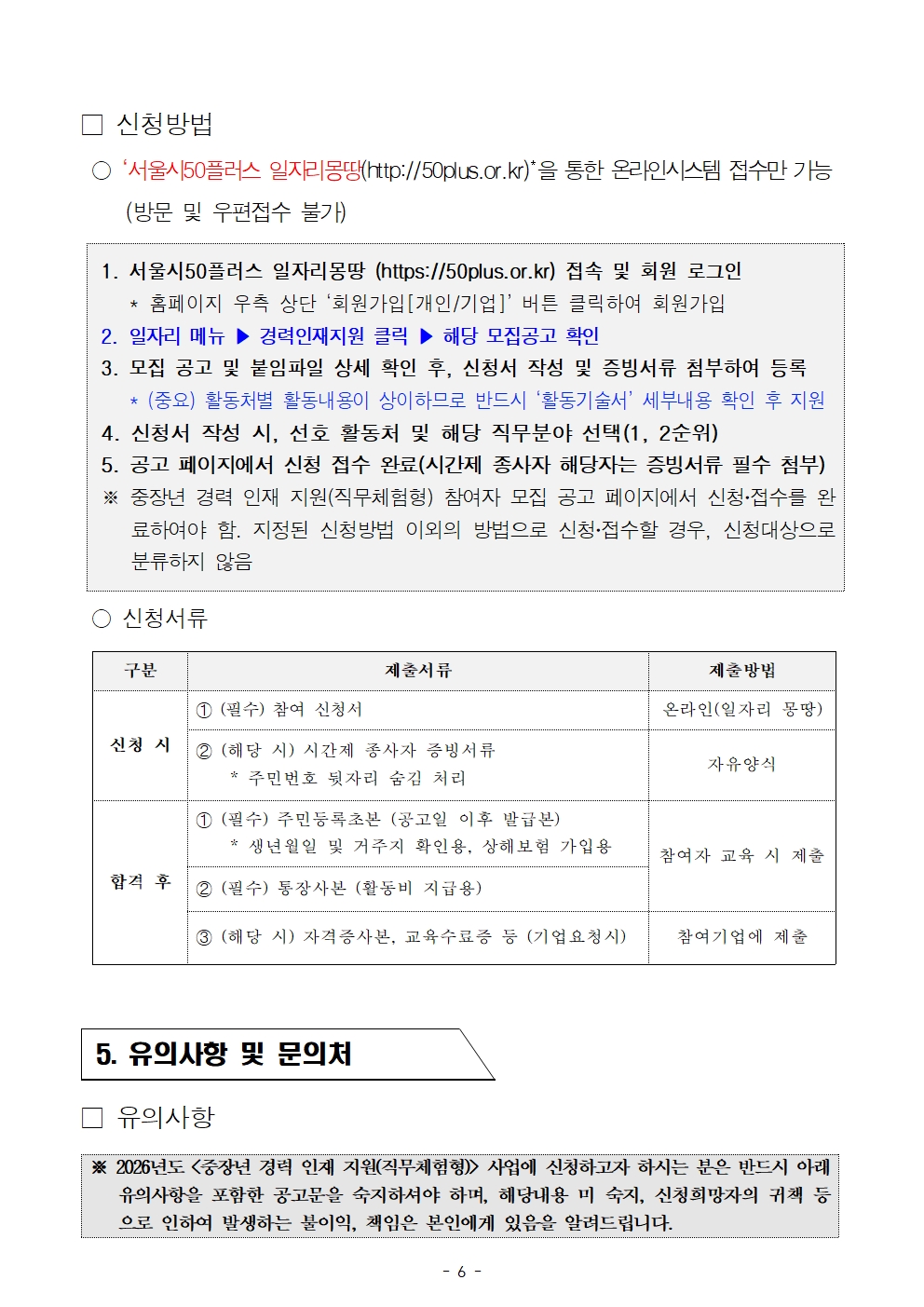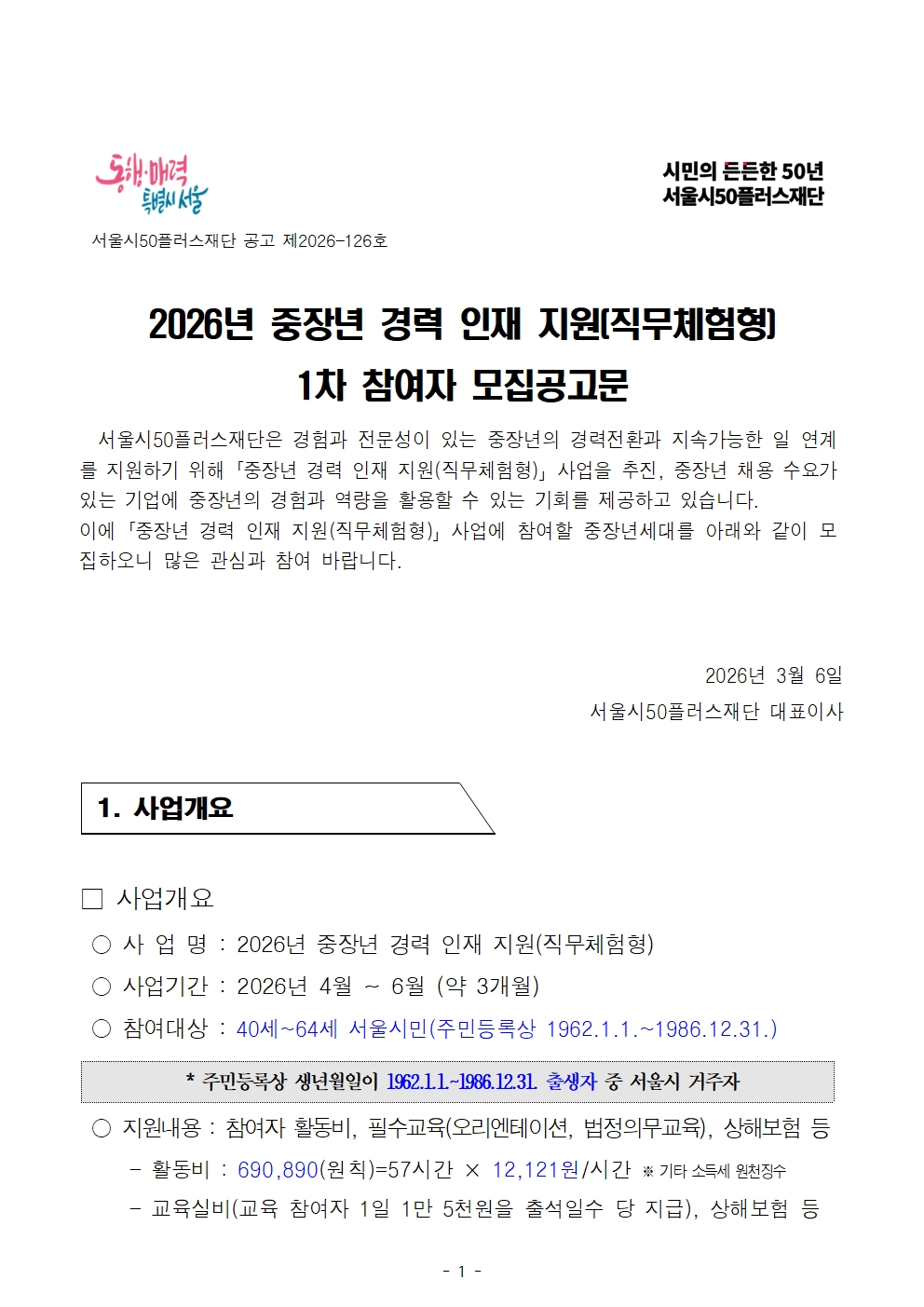 [남부]중장년 경력 인재 지원(직무체험형) 1차 참여자 모집마감 D-10