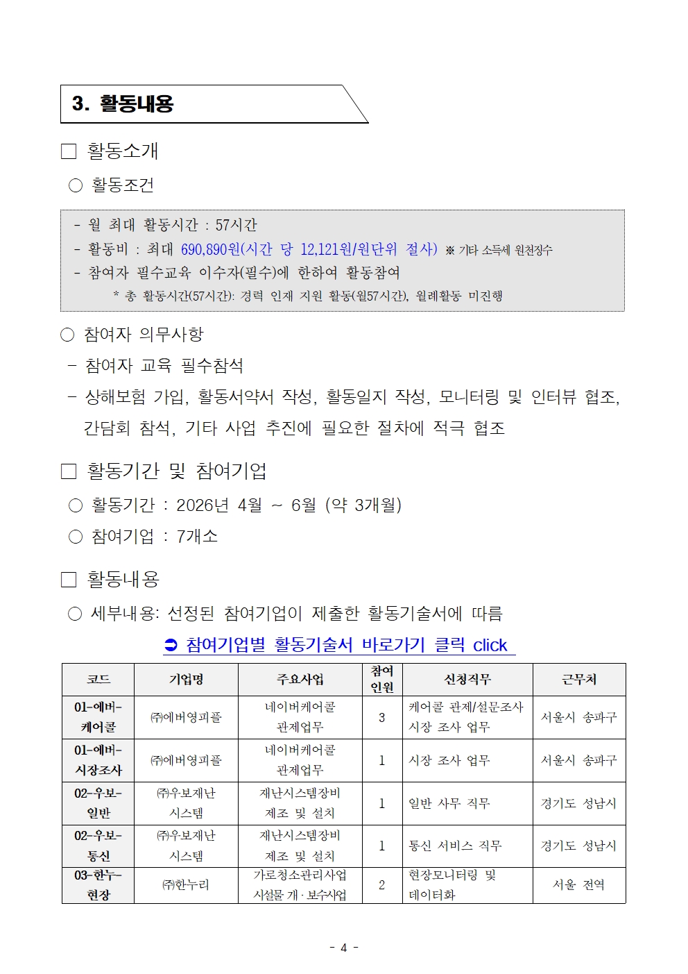 ① 공고문기업별 활동기술서 내용을 숙지하신 후에 신청 바랍니다