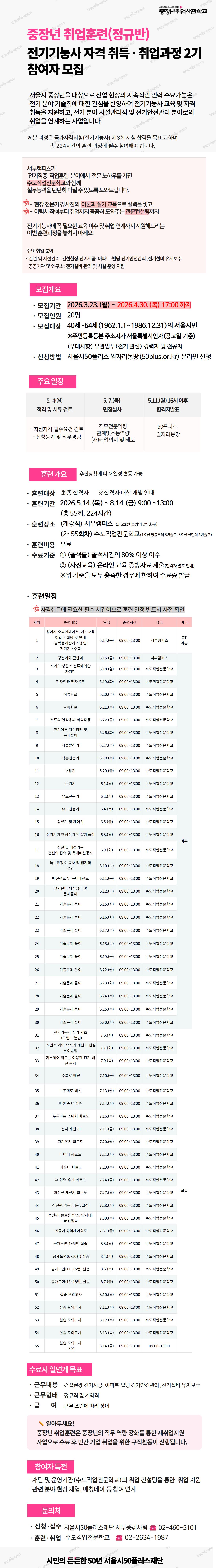 정규반 「전기기능사 자격 취득 · 취업 과정(2기)」참여자 모집마감 D-37