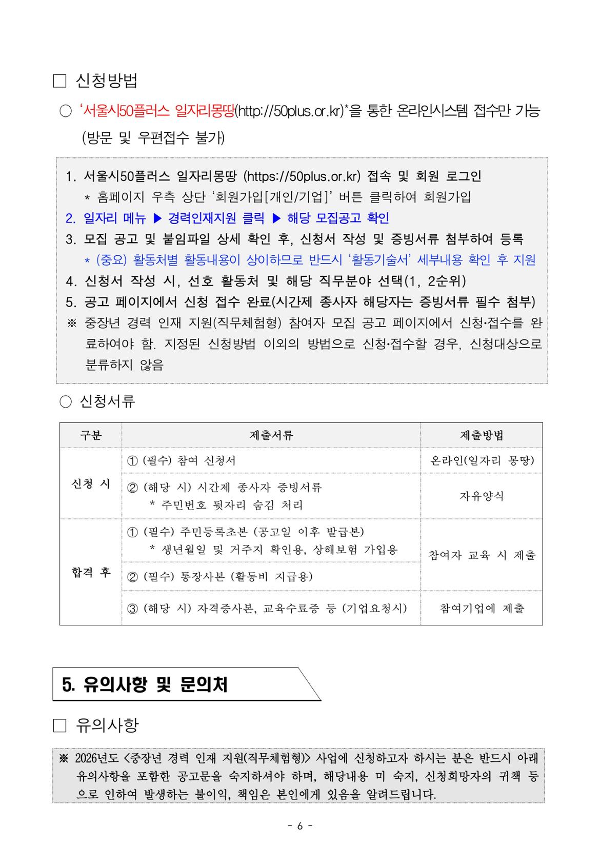 50플러스 일자리몽땅 로그인 →  마이페이지 '서 작성' → 단의 신청하기