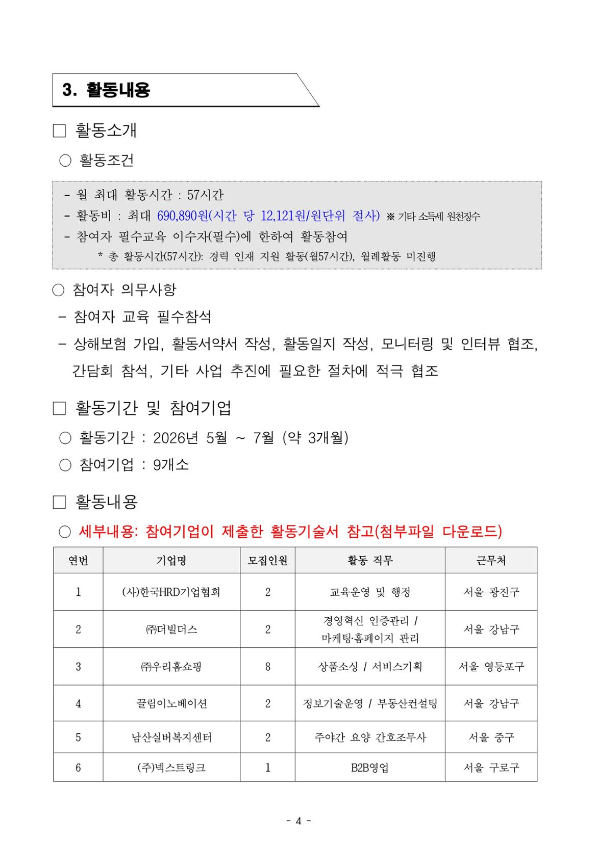 첨부파일 공고문.pdf 기업별 활동기술서.pdf