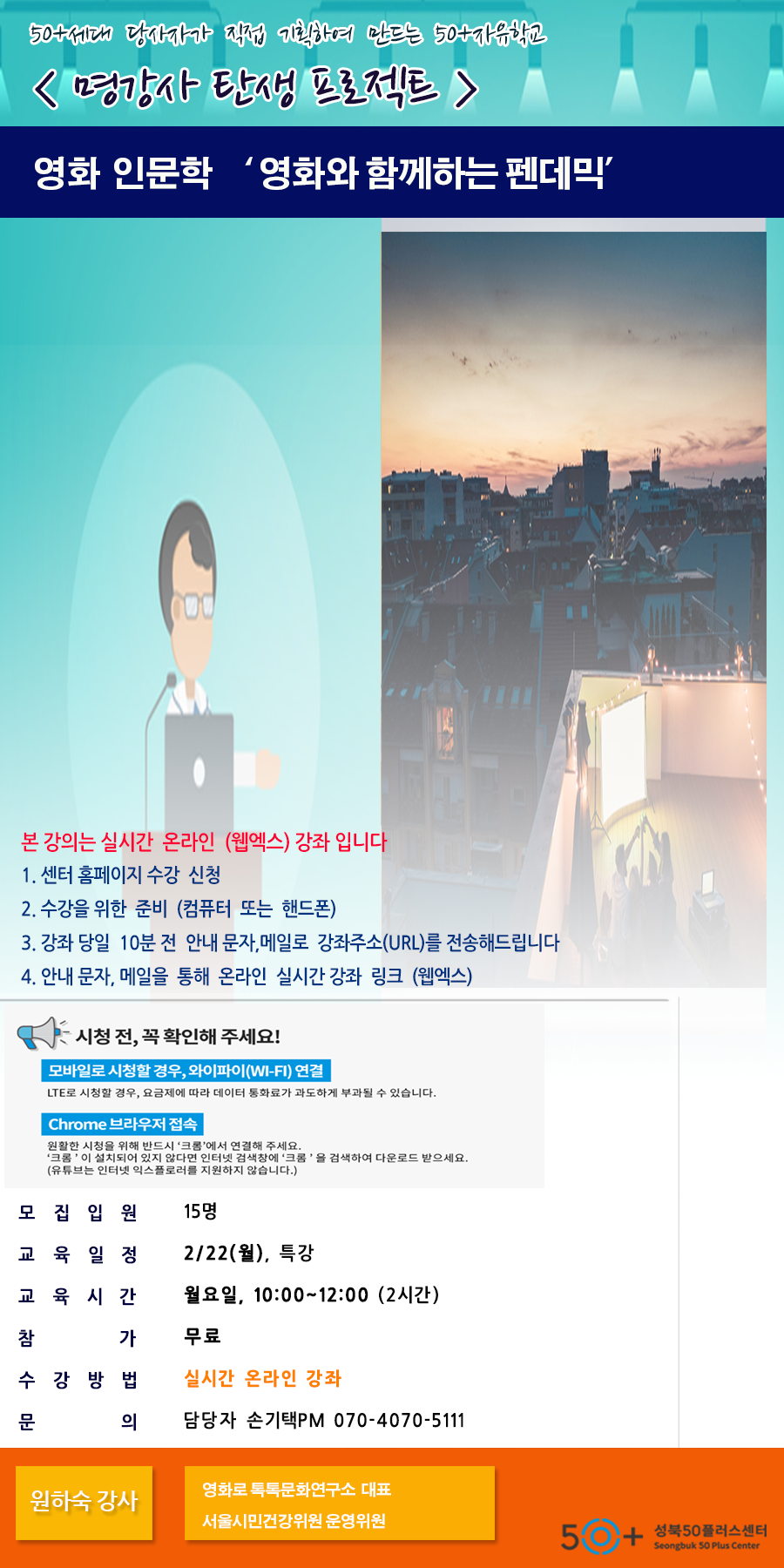 [50+자유학교] 영화 인문학 ' 영화와 함께하는 펜데믹'
