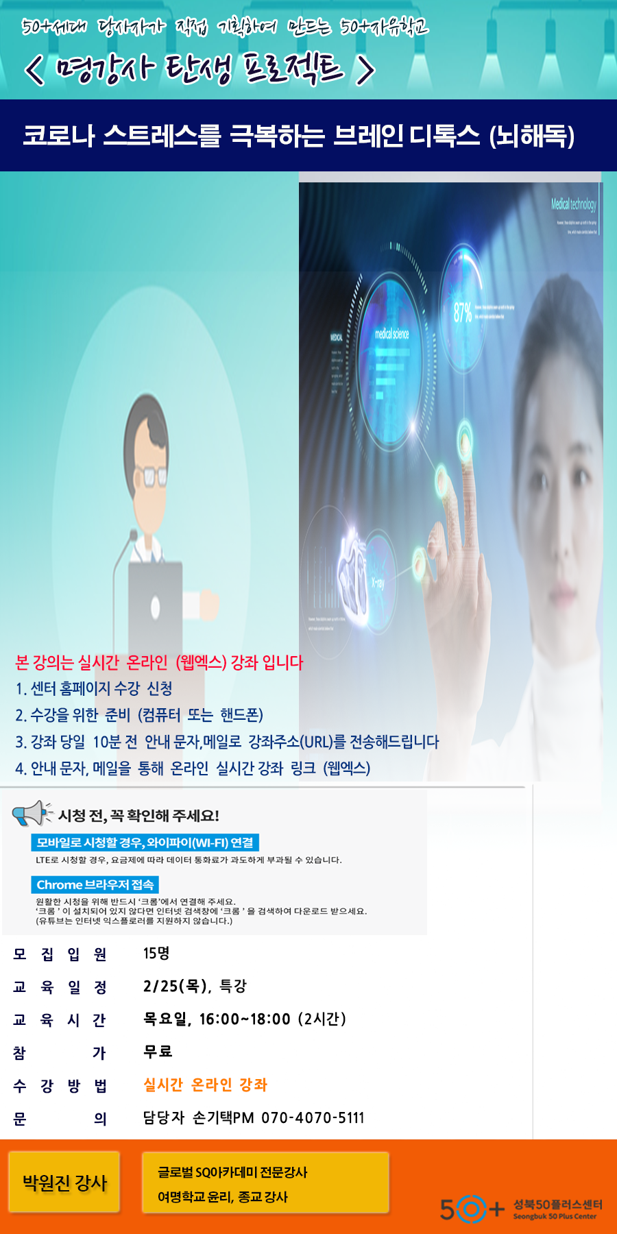 (1 회차) 2021.02.25(16:00 ~ 18:00) 박원진 코로나 스트레스를 극복하는 브레인디톡스