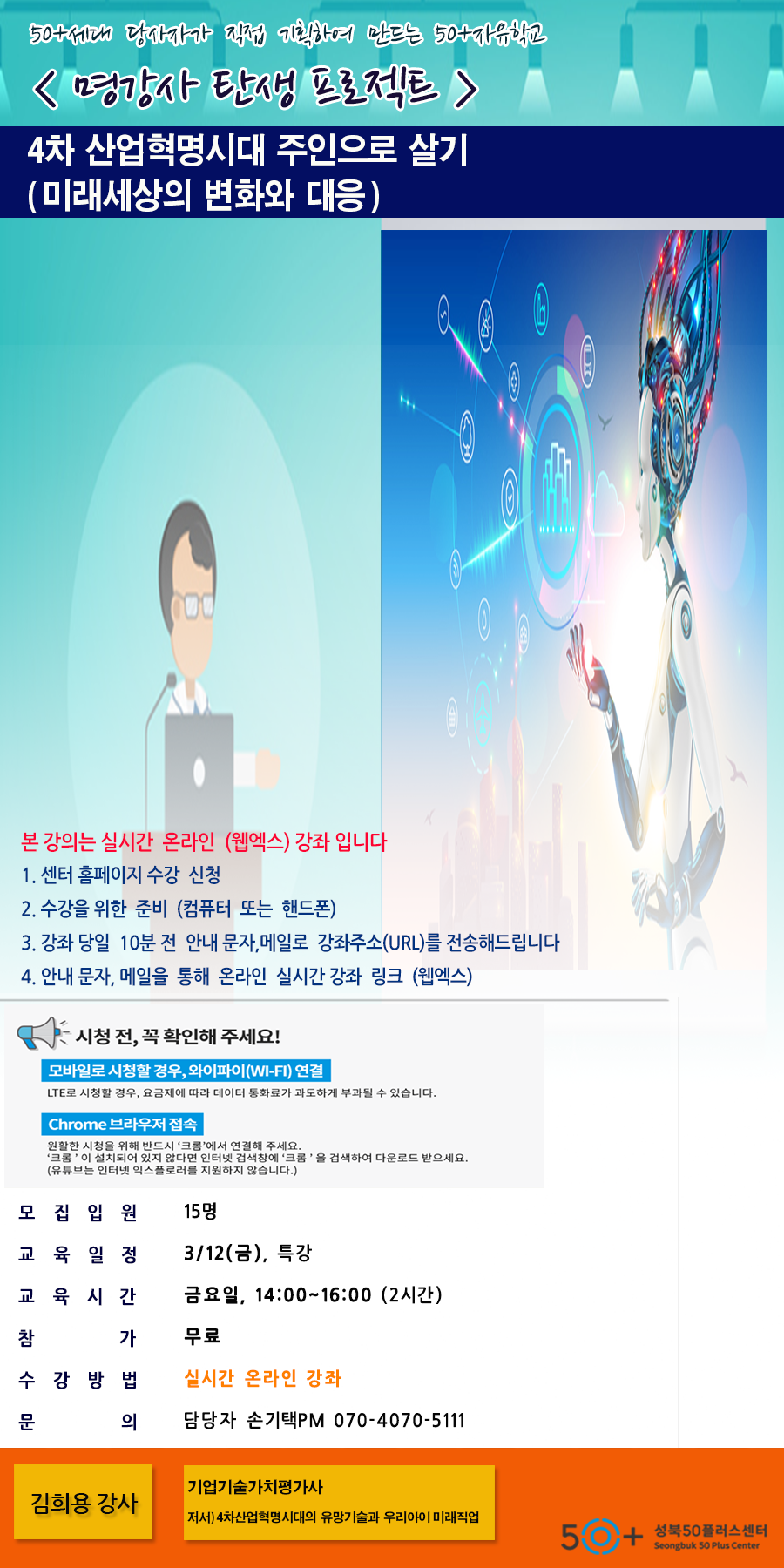 [50+자유학교] 4차 산업혁명시대의 주인으로 살기 ( 미래세상의 변화와 대응 )