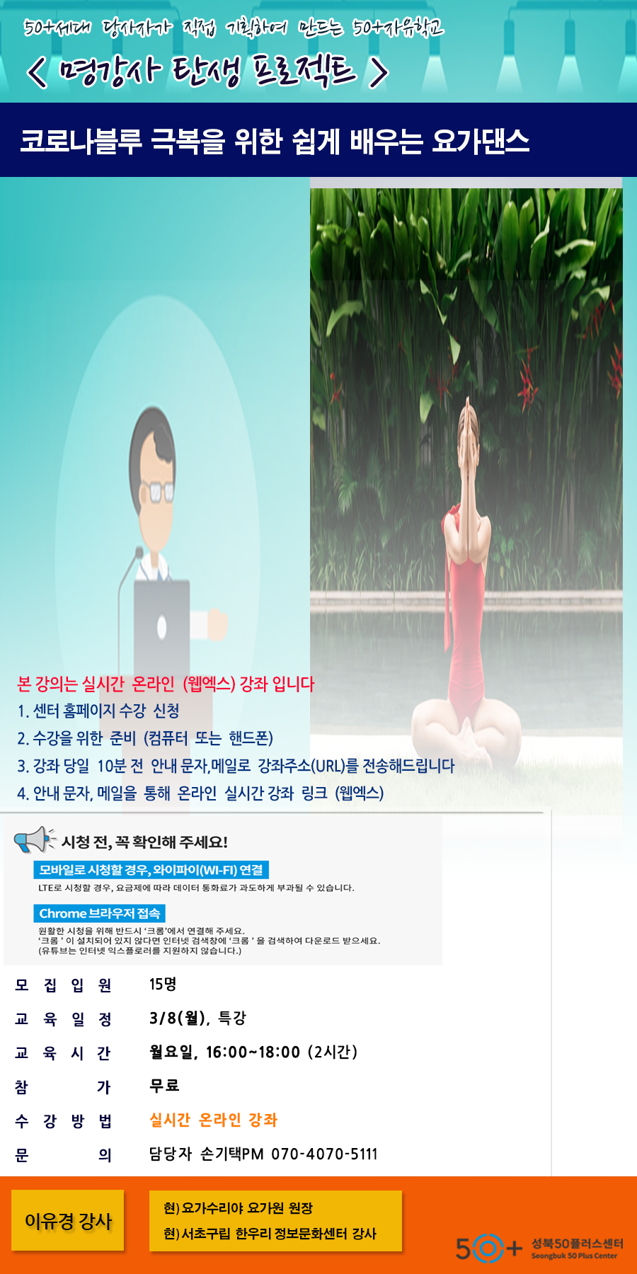 [성북][50+자유학교] 코로나블루 극복을 위한 쉽게 배우는 요가댄스