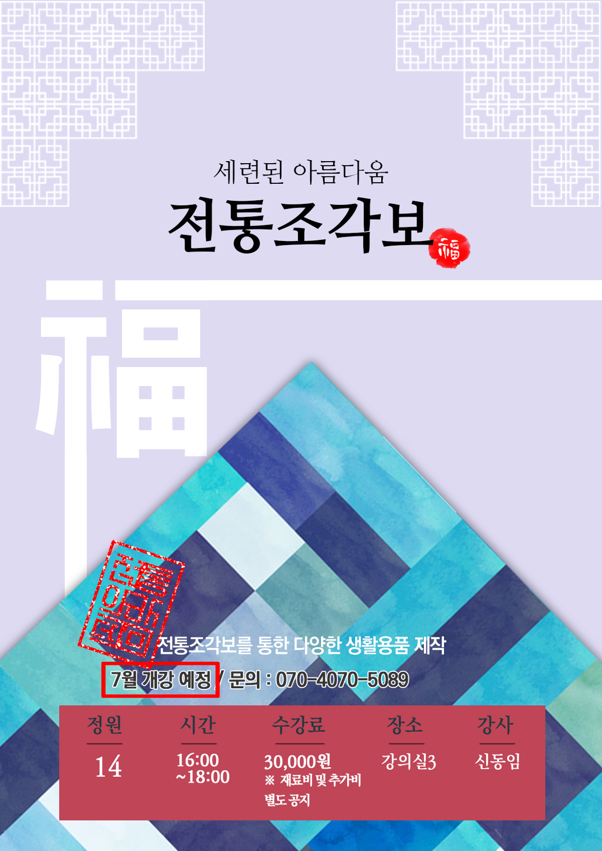 [특화-전통아카데미] 생활 속에 빛나는 아름다운 전통조각보 (입문반)