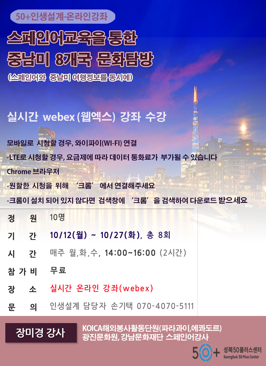 (8 회차) 2020.11.11(14:00 ~ 16:00) 장미경 <웹엑스(Webex) 온라인 강좌 : 원활한 시청을 위해 '크롬'에서 연결해주세요>