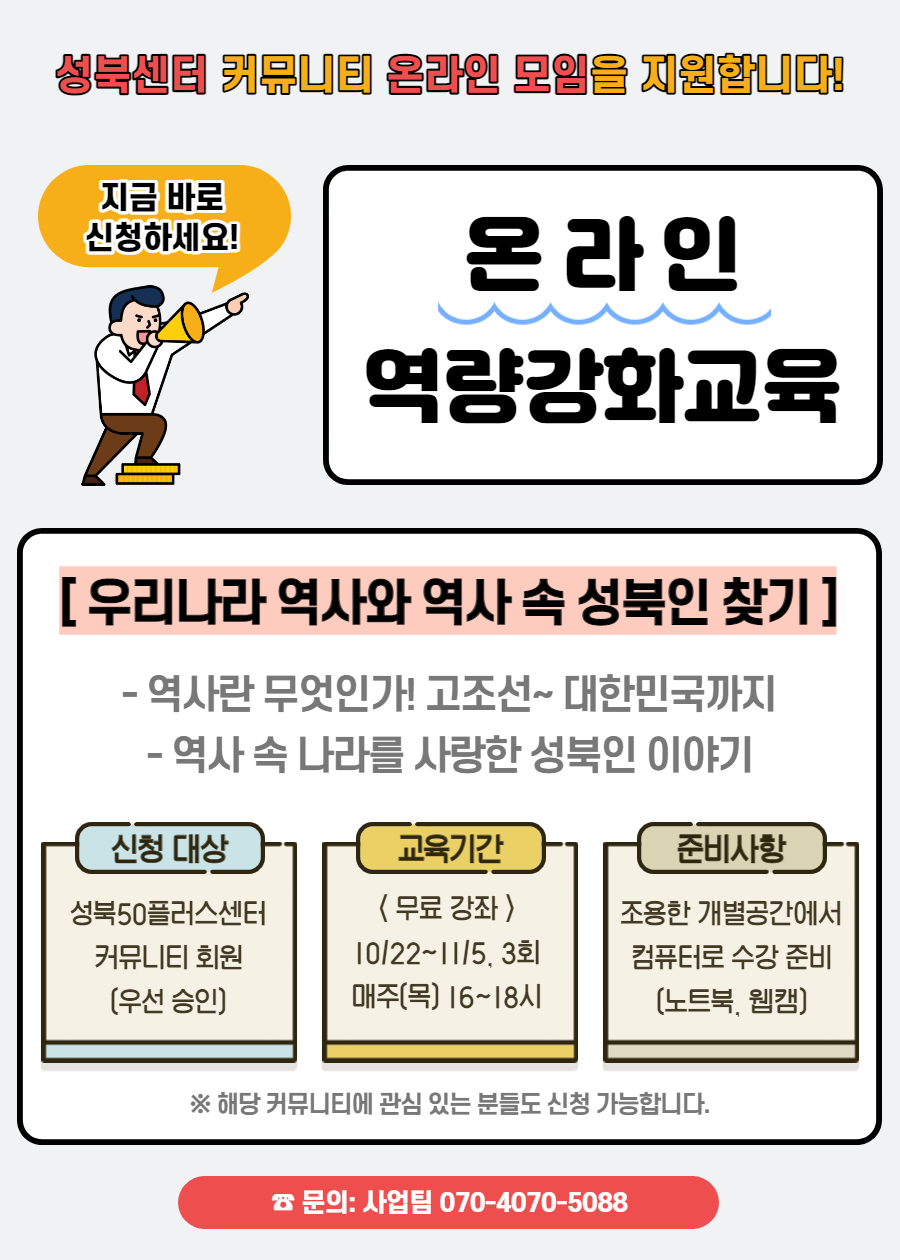 [커뮤니티-온라인] 우리나라 역사와 역사 속 성북인 찾기