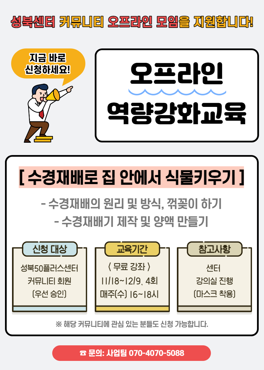 [성북][커뮤니티-온라인 나눔강좌] 수경재배 취미부터 사업까지