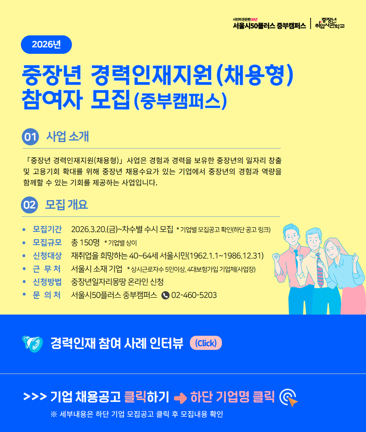 📢[모집] 2026 중부캠퍼스 중장년 경력인재지원(채용형) 참여자 모집(1차)